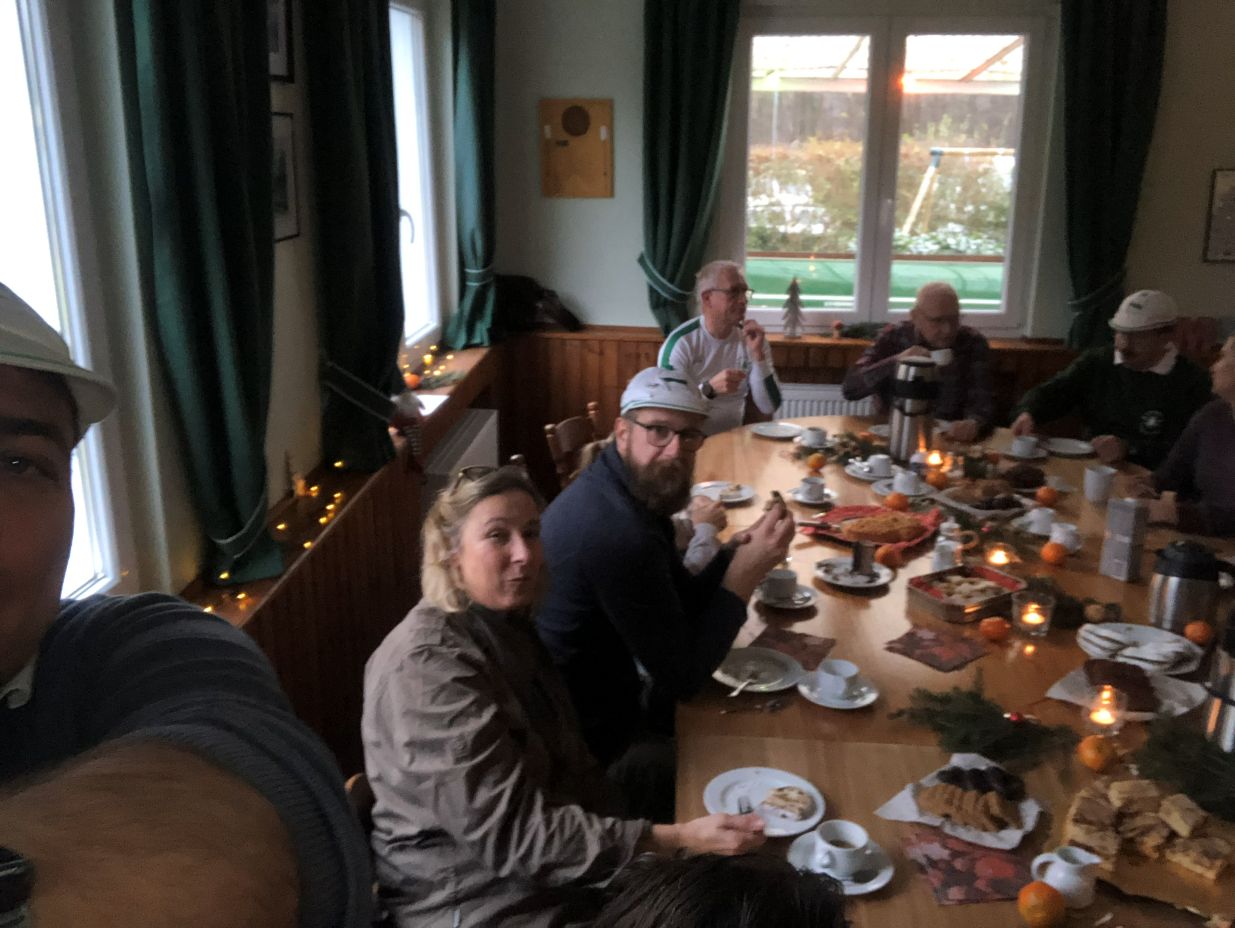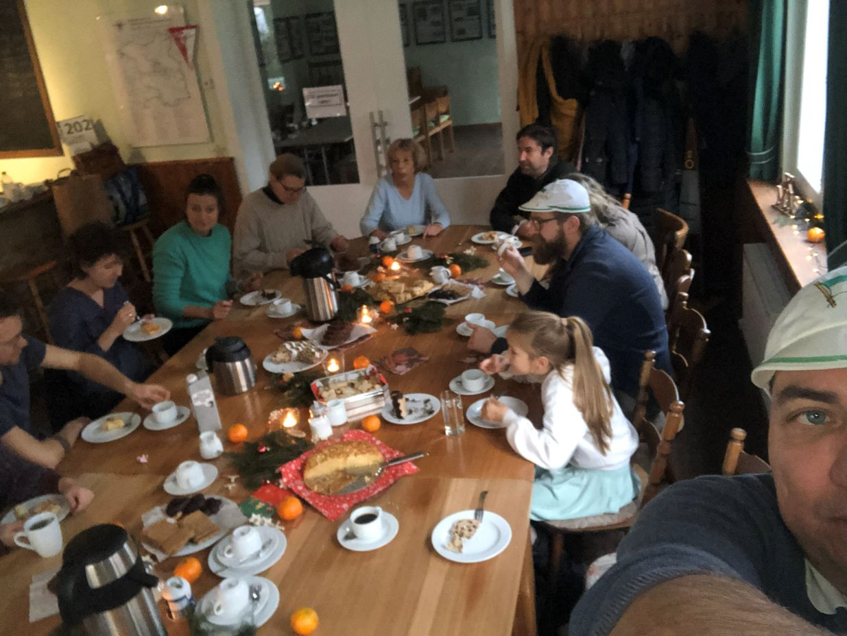 Im Anschluss trafen sich die Mitglieder und Gäste zu einer gemütlichen Kaffeerunde im Vereinshaus. Mit fast 20 Teilnehmern war die Runde sehr gut besucht. Bei Kaffee, Kuchen und angeregten Gesprächen wurde die Adventszeit feierlich eingeläutet.