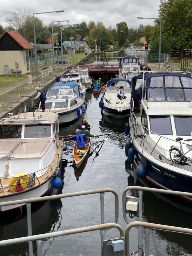 Über das lange Wochenende rund um den 3. Oktober unternahmen wir mit zwölf Ruderbegeisterten eine herrliche Tour auf unseren vertrauten Hausgewässern – der Havel – in Richtung Templin. Zwei Boote mit zusammen acht Bootsplätzen standen uns zur Verfügung, sodass wir flott unterwegs waren.